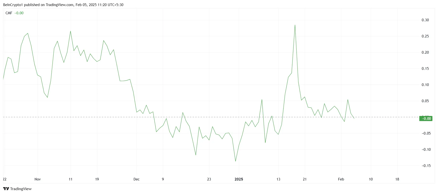 At the same time, the Chaikin Cash Flow (CMF) indicator is struggling to stay above the zero line. This means that capital inflows into Solana are too small to support the altcoin's uptrend. If the indicator moves into the negative zone, the pressure on the cryptocurrency's rate will increase even more.